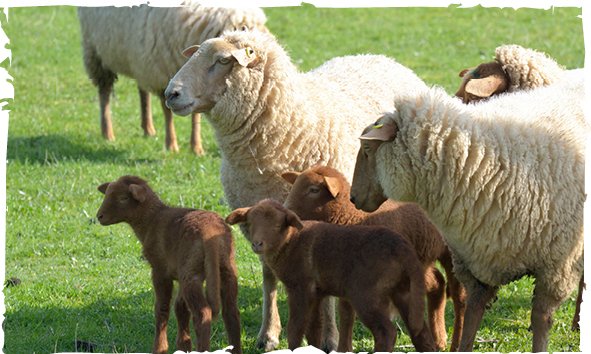 Unsere Schafe sind Coburger Fuchsschafe. Sie grasen unter den Streuobstbäumen